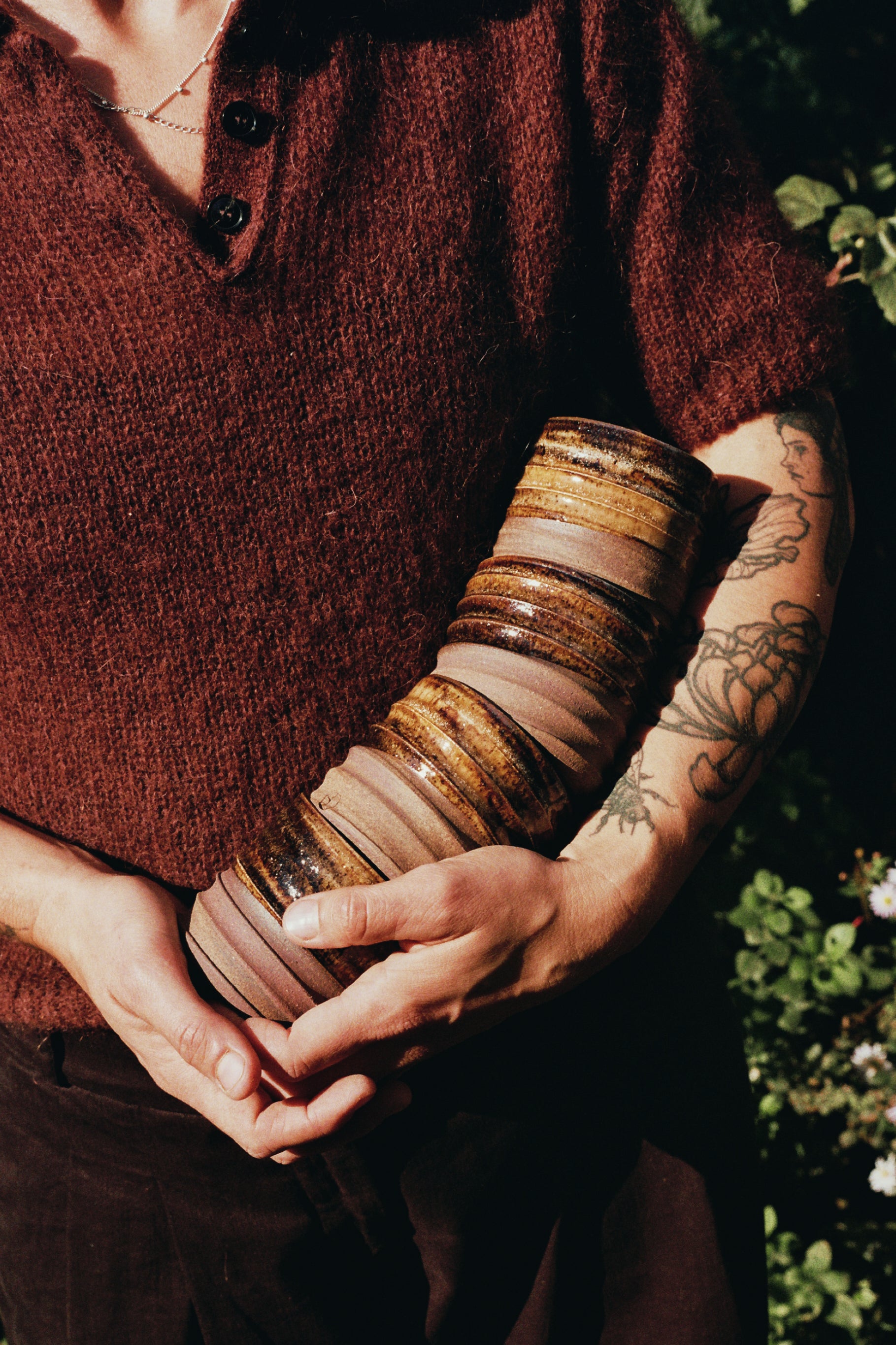 We houden er van om in onze eigen bubbel — verbonden met onszelf en de natuur, te kunnen creëren, dit op gevoel, mét gevoel. Elk stuk gaat meermaals door onze handen en is daardoor uniek.